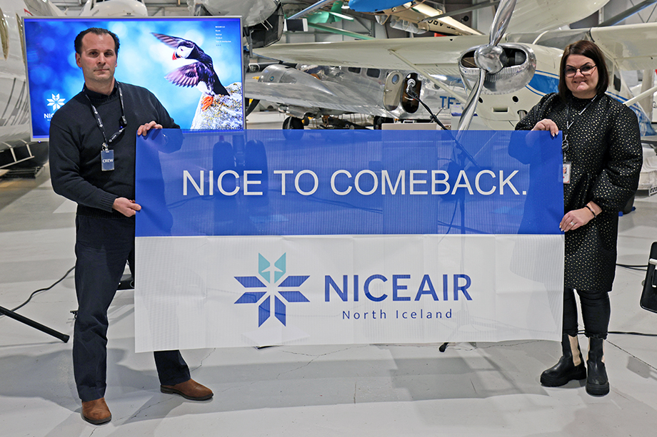 Flug milli Akureyrar og Kaupmannahafnar í nafni Niceair hefst á ný í febrúar næstkomandi. Hér er á ferð nýtt fyrirtæki í eigu annarra en ráku Niceair á sínum tíma, og stefnt er að því að fljúga víða um Evrópu, en „nafnið er fullkomið og allir elska Ísland,“ sagði forstjórinn, Martin Michael, spurður hvers vegna hann hafi ákveðið að nota Niceair nafnið og fljúga m.a. til og frá Akureyri, þegar hann kynnti starfsemina í gær.