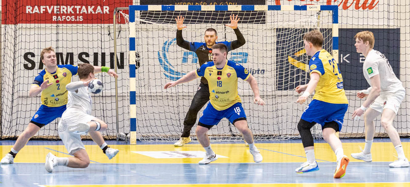 Tvo sigra þurfti til að komast áfram úr átta liða úrslitunum og KA-strákarnir unnu tvíframlengdan leik í Eyjum á fimmtudaginn. Þótt eyjan sé fögur höfðu þeir engan áhuga á að gera sér ferð þangað aftur í bráð – af augljósum ástæðum.