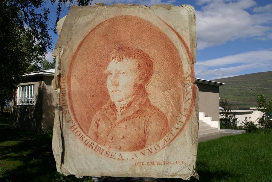 Davíð Stefánsson frá Fagraskógi var mikill bókasafnari og átti stórt einkabókasafn. En eins og gengur og gerist áskotnaðist Davíð oft ýmislegt annað í söfnun sinni sem tengist íslenskri menningu og sögu enda mikill áhugamaður um slíkt. Nýverið fannst í Davíðshúsi merkileg rauðkrítarteikning eftir Sæmund Magnússon Hólm listamann og prest.