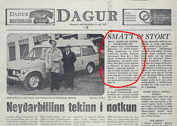 - Neyðarbíllinn tekinn í notkun, er fyrirsögn á baksíðu Dags að ofan og til gamans má geta þess að Soffía kom við sögu þegar bíllinn, sem Blaðamannafélag Íslands og Rauðakrossdeild Akureyrar höfðu safnað fyrir, var formlega afhentur Akureyrarbæ. Soffía var um þær mundir formaður Félagsmálaráðs Akureyrar og hélt ávarp við þetta tækifæri.