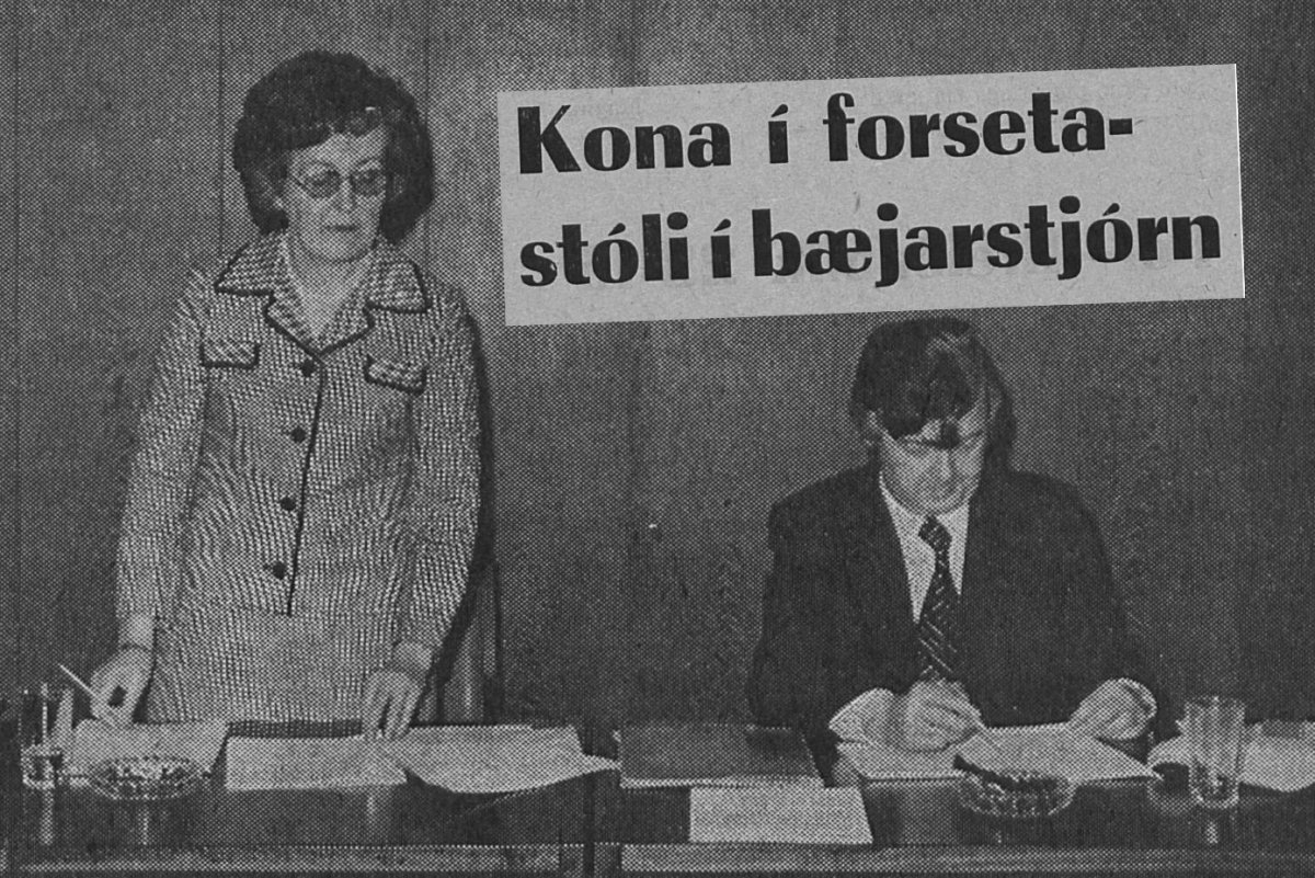 Það var þriðjudaginn 7. október 1975 sem Soffía Guðmundsdóttir, bæjarfulltrúi Alþýðubandalagsins og 2. varaforseti bæjarstjórnar, settist í forsetastólinn fyrst kvenna.