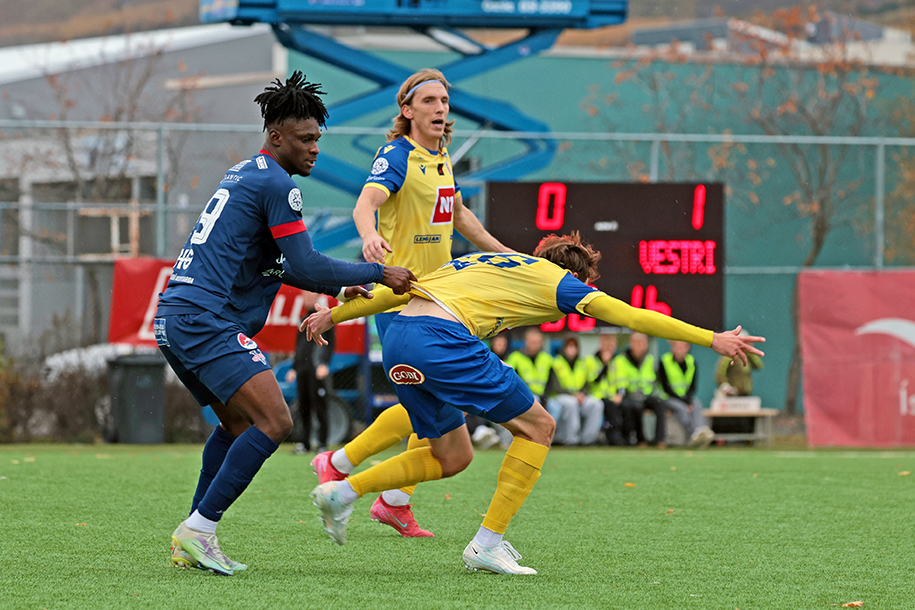 KA tók á móti Vestra í keppni neðri hluta Bestu deildar karla í dag og skildu liðin jöfn, 1:1. Heimamenn áttu fyrir leikinn ennþá fræðilega möguleika á að falla en með jafnteflinu eru þær áhyggjur endanlega úr sögunni.