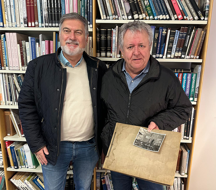 Aufúsugestir á Minjasafninu! Ian Stubbs, til vinstri, og James Jessop með albúm föður síns.