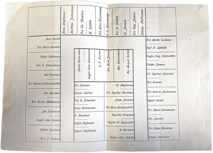 Sætaskipan og matseðill í silfurbrúðkaupi 1914