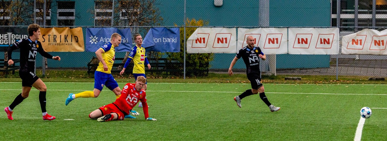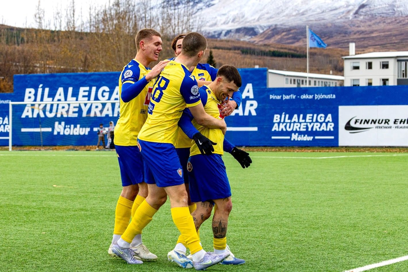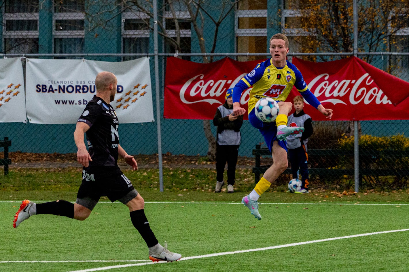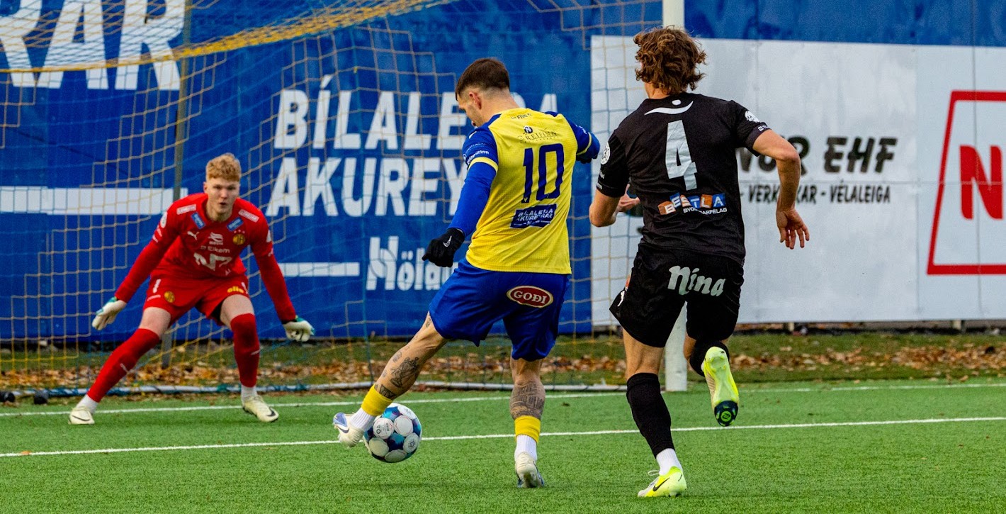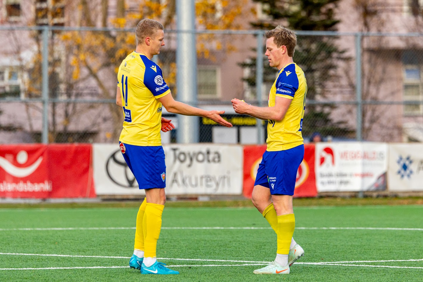 Ingimar Torbjörnsson Stöle skorar þriðja mark KA eftir sendingu Hallgríms Mars.