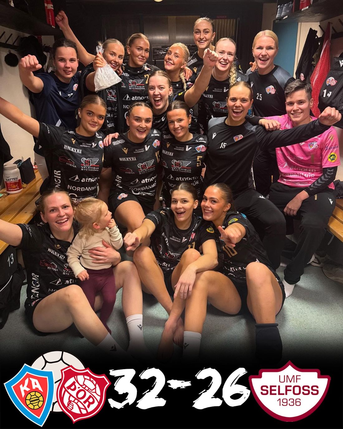 Fögnuður! Mynd sem birt var á Facebook síðu KA eftir leikinn í kvöld.