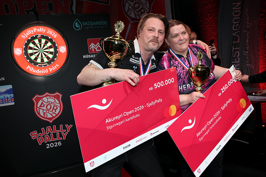 Glatt var á hjalla í Sjallanum á laugardagskvöldið síðasta þegar úrslit réðust á Opna Akureyrarmótinu í pílukasti – Sjally Pally, eins og forkólfar píludeildar Þórs kalla mótið, í anda heimsmeistaramótsins sem fer alltaf fram í Ally Pally í London. Svíinn Björn Lejon stóð upp sigurvegari í karlaflokki og Brynja Herborg Jónsdóttir varð hlutskörpust í kvennaflokki.