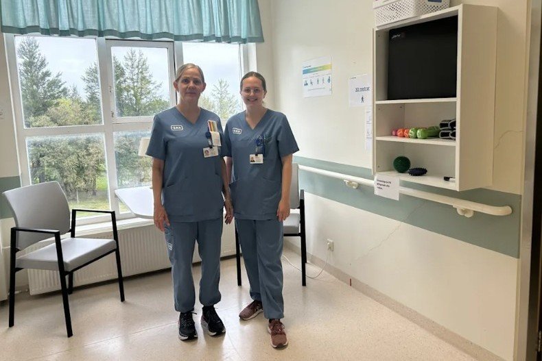 Sjúkraþjálfararnir Kristveig Atladóttir og Jana Björg Róbertsdóttir eru meðal þeirra sem koma að verkefninu Hreyfum okkur á Sjúkrahúsinu á Akureyri. Mynd: sak.is.