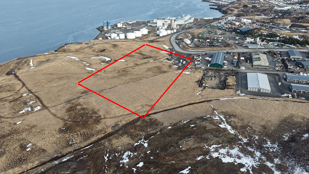 Lóðin sem um ræðir er um það bil svæðið sem er innan rauðu línanna. Mynd: Þorgeir Baldursson