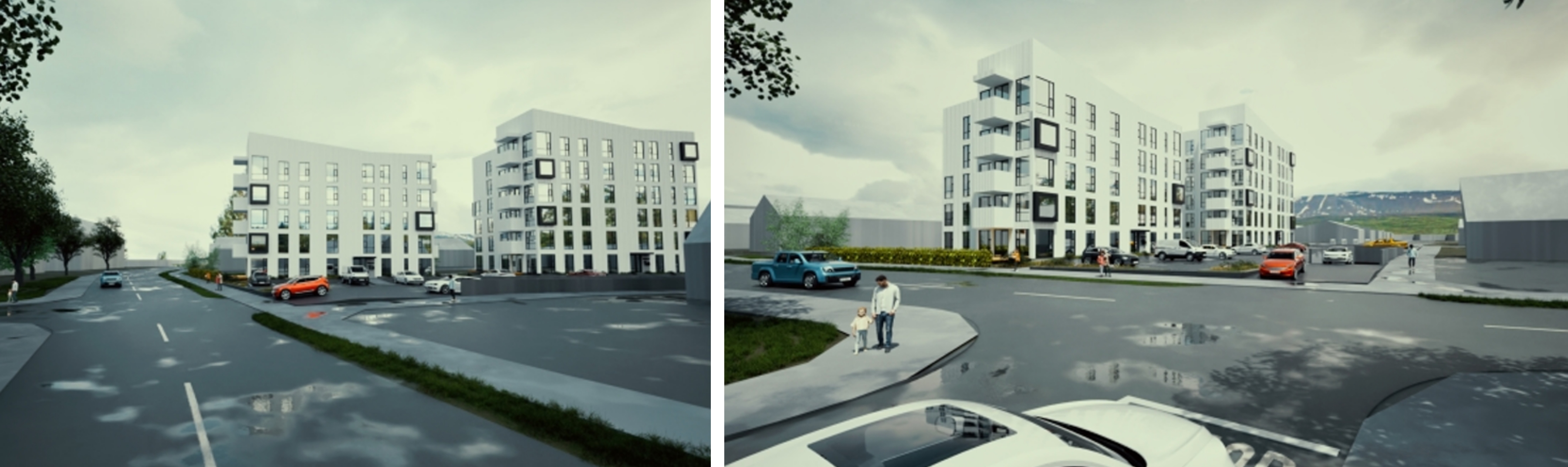 Í undirbúningi – Nokkur af þeim svæðum sem eru næst á dagskránni sem uppbyggingarsvæði samkvæmt húsnæðisáætlun Akureyrarbæjar eru þéttingarsvæði. Þar má nefna Viðjulund 1 þar sem nú er í skipulagsgátt auglýsing um breytingar á skipulagi, líklega síðasta skrefið áður en endanlegar skipulagsbreytingar verða staðfestar og framkvæmdir geta hafist. Þar munu rísa tvö fjölbýlishús með samtals 51 íbúð á næstu árum. Hönnun þeirra er langt komin.