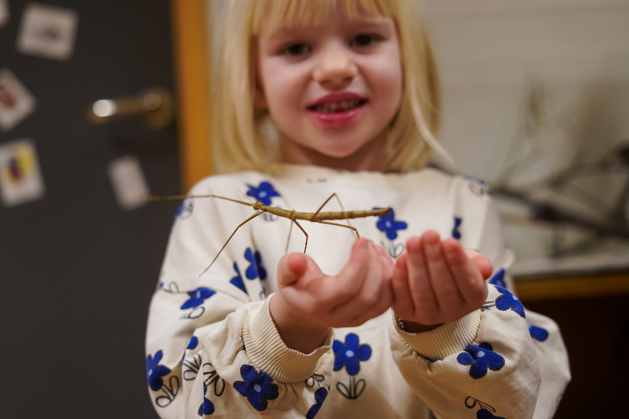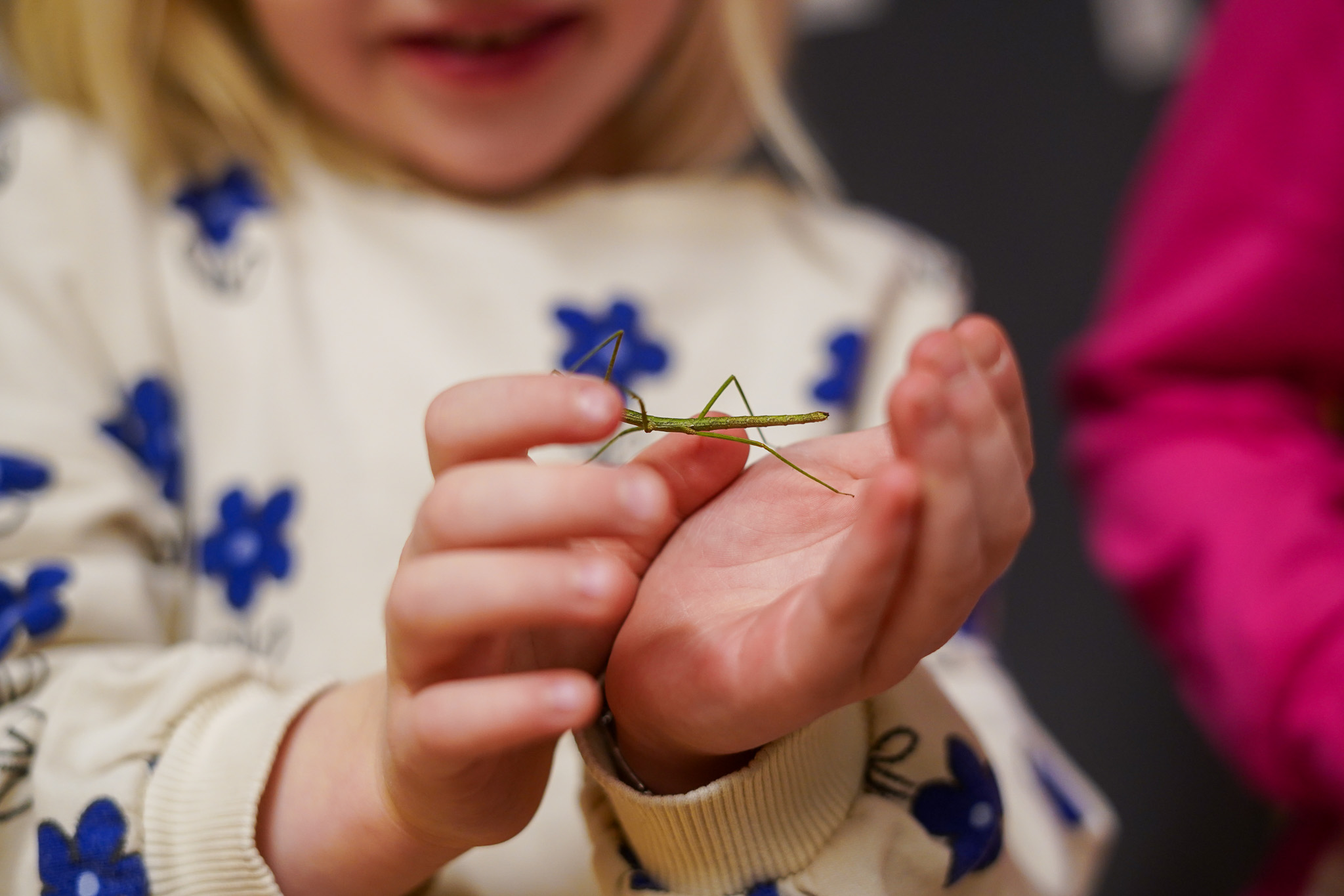 Það er svolítið gaman að fylgjast með krökkunum sækja förustafina í búrið og láta þá labba á lófunum á sér. Stafirnir fálma á undan sér og hafa greinilega nokkuð sterkt grip með fótunum. Um leið og þeim er skilað í búrið finna þeir sér hentuga grein, stilla sér upp og eru þá alveg grafkyrrir. Einn starfsmaður á deildinni bendir á að tilgangur lífs þessa dýra sé að vera ósýnileg, en þeir líta bókstaflega út eins og trjágrein til þess að dyljast fyrir óvinum.