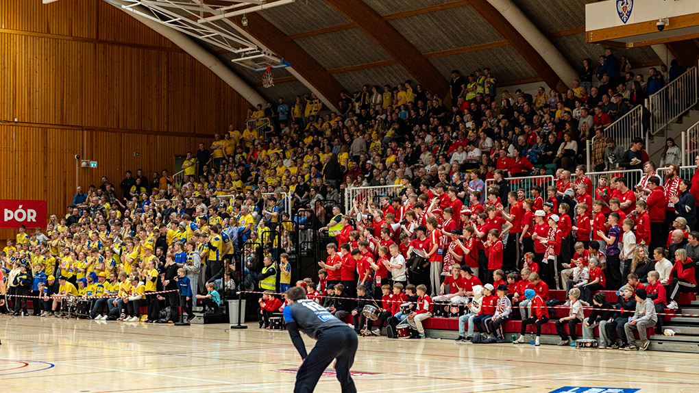 Stuðningsmenn beggja félaga fjölmenntu í Höllina og úr varð hin besta skemmtun. Stemningin var frábær en úrslitin urðu reyndar til þess að enginn gladdist þegar flautað var af. Mynd: Ármann Hinrik