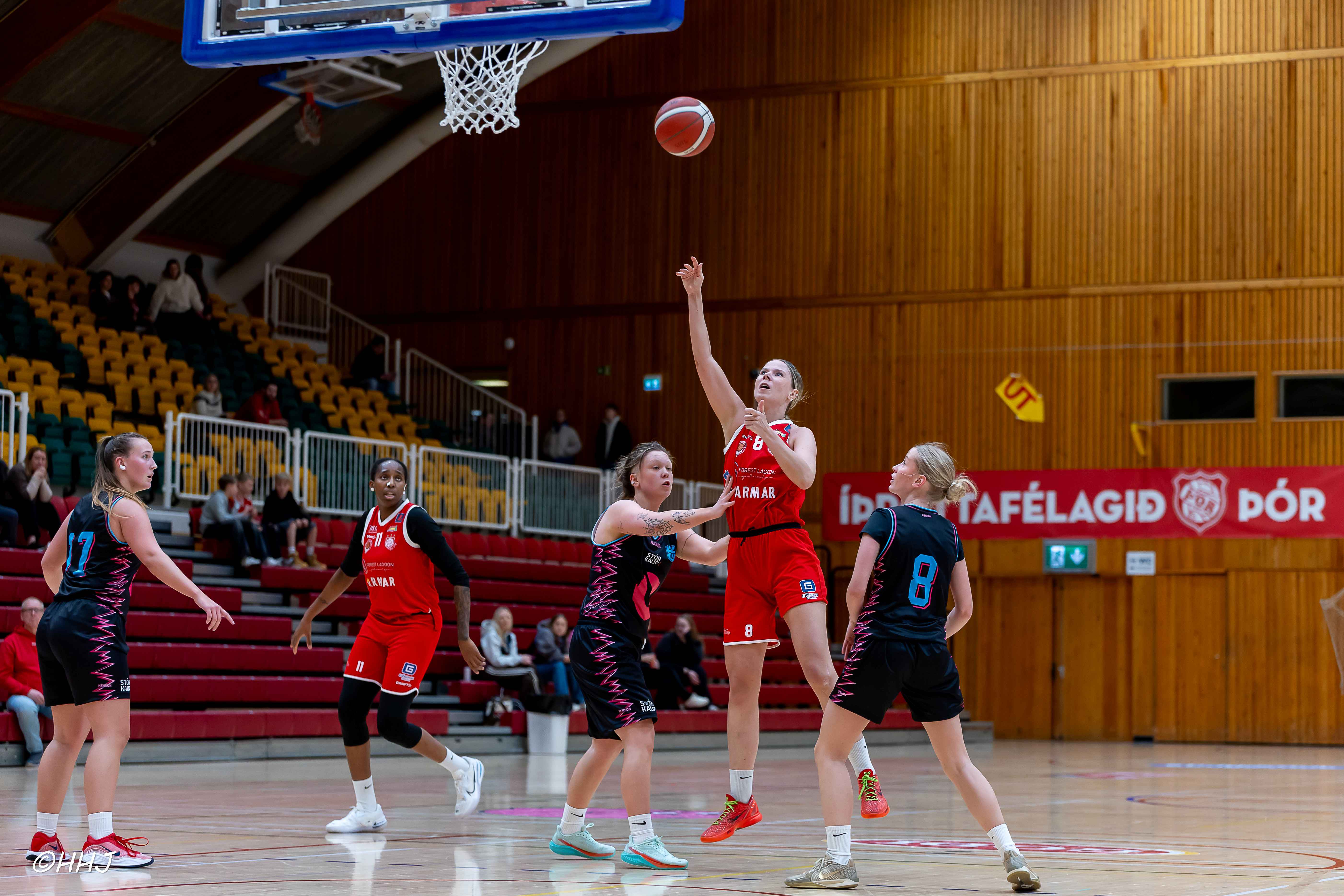 Yvette Adriaans skoraði 15 stig, tók 12 fráköst og átti fimm stoðsendingar. Liðsfélagi hennar, Iho Lopez, skoraði 16 stig, tók 17 fráköst og átti tvær stoðsendingar. Mynd: Helgi Heiðar Jóhannesson.