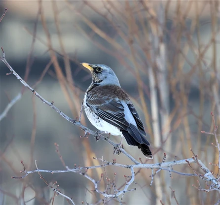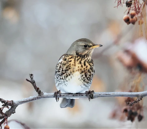 Á Bretlandseyjum er mikill fjöldi trjáa og runna sem myndar ber. Það eru fyrst og fremst þessi fjölbreyttu ber sem gráþrestir éta yfir veturinn á þeim slóðum. Hér á landi duga berin sjaldnast sem fæða yfir allan veturinn. Þegar þrengist um fæðu og snjór hylur jörð sækir fuglinn í fjörur og tekur þar ýmsar pöddur eða að mannabústöðum þar sem fuglum er gefið. Stórir almenningsgarðar þar sem fæðu er að finna, eins og í Lystigarðinum á Akureyri, verða þá vinsælir. Þar hefur mátt sjá gráþresti á hverjum vetri í allmörg ár. Þar sem þeim er gefið verða þeir heimaríkir og verja svæðið af hörku ef þeir telja sig þurfa þess. Flestir smáfuglar víkja fyrir gráþrestinum en svartþrösturinn gerir það ekki enda eru þeir svipaðir að stærð. Upphefjast þá áflog og læti.