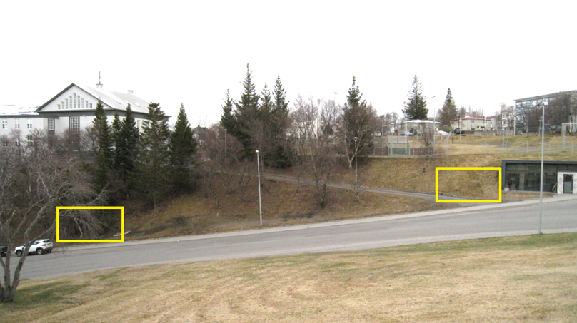 Milli Brekkuskóla og Rósenborgar undir skólalóðinni