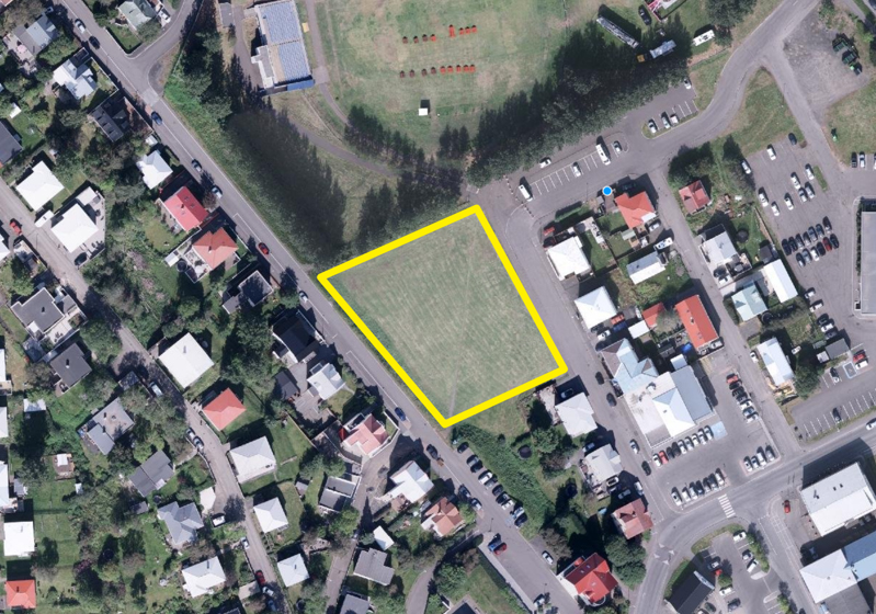 Neðan Brekkugötu við íþróttavöllinn