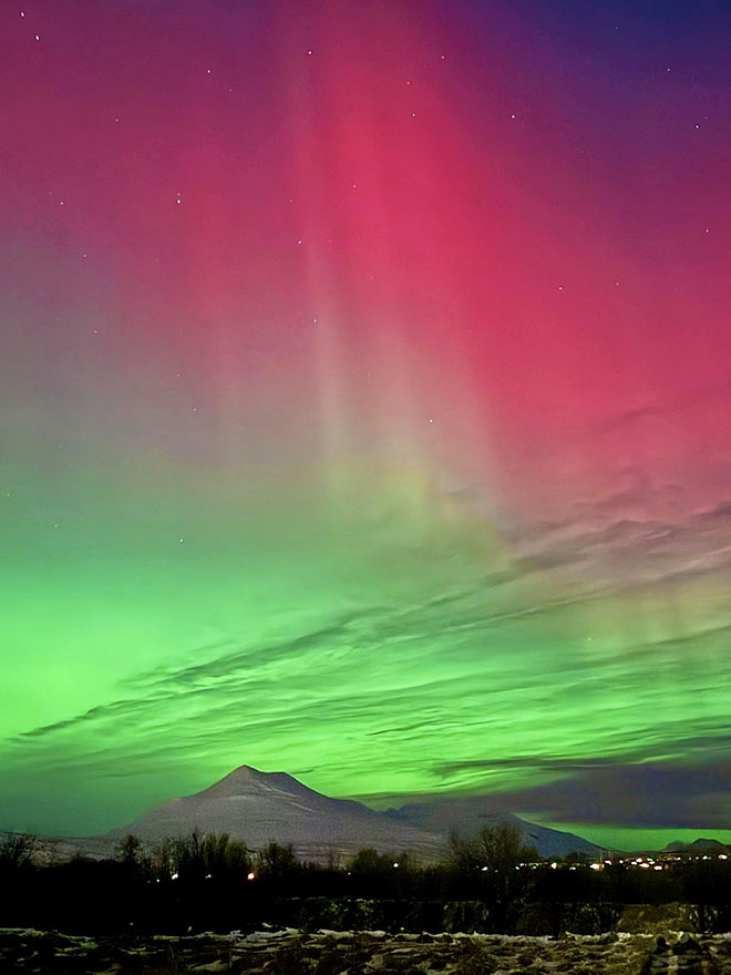 Náttúruöflin koma manninum stundum skemmtilega á óvart, jafnvel svo mjög að fjöldinn stendur nánast gapandi, orðlaus af undrun. Þannig leið án efa mörgum í gærkvöldi þegar landsmönnum var boðið upp á hreint ótrúlegt sjónarspil dansandi litadýrðar á himni.