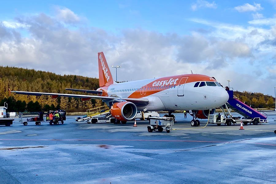 Þota easyJet á Akureyrarflugvelli í fyrsta flugi vetrarins í október sl. Mynd: Þórhallur Jónsson.