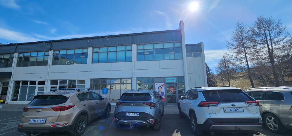 Framsókn og L-listinn eru í sama húsi við Kaupvangsstræti 1 en á sitthvorri hæðinni.
