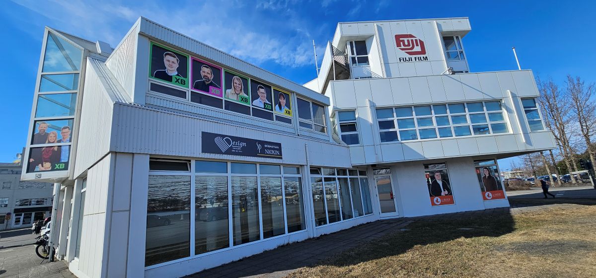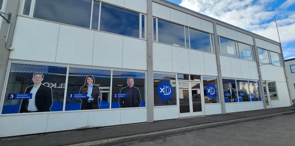 Beint á móti Elko við Furuvelli hafa Sjálfstæðismenn komið sér fyrir.