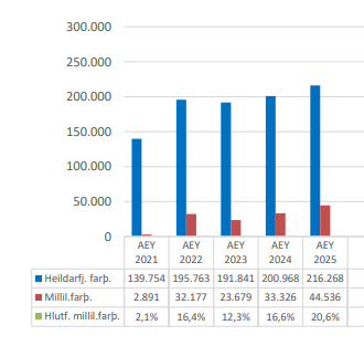 Á þessari mynd frá Isavia sést m.a. að hlutfall millilandafarþega af heildarfjölda farþega um Akureyrarflugvöll fer vaxandi. Enn er þó mikið svigrúm til frekari vaxtar.