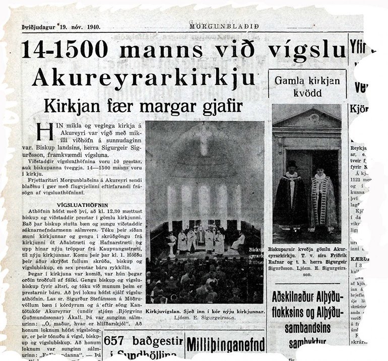 Mikið var um dýrðir sunnudaginn 17. nóvember 1940 og töluvert fjallað um athöfnina í blöðunum. Morgunblaðið lagði drjúgt pláss undir frásögn af kirkjuvígslunni á þriðjudeginum. Í inngangi frásagnar segir: „Frjettaritari Morgunblaðsins á Akureyri sendi blaðinu í gær með flugvjelinni eftirfarandi frásögn af vígsluathöfninni.“