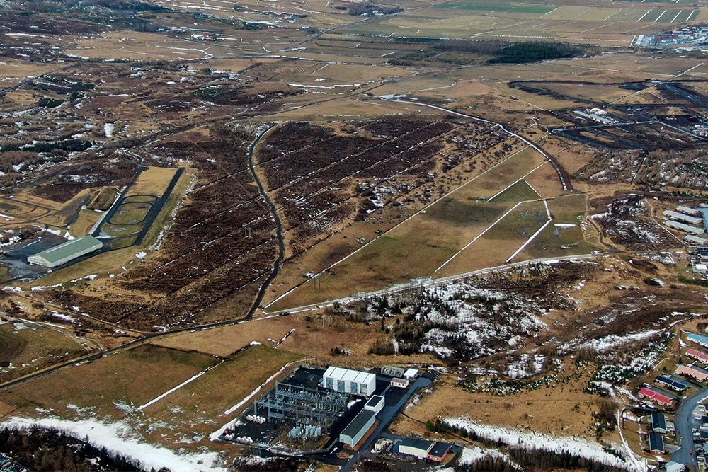 Móahverfið nýja verður þar sem græni hringurinn er dreginn. Rauða línan sýnir um það bil hvernig Blöndulína 3 mun liggja að Rangárvöllum. Ljósmynd: Skapti Hallgrímsson.