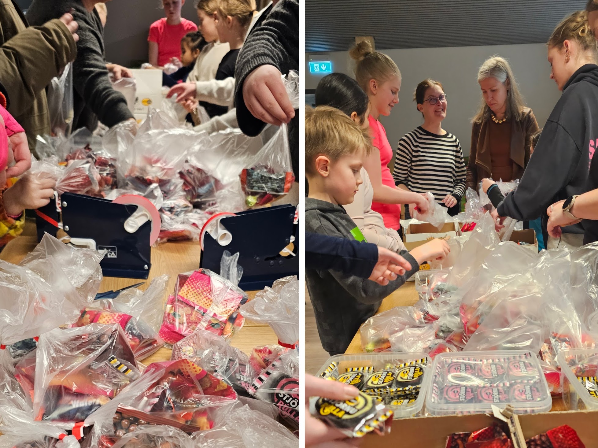 Með góðri samvinnu er hægt að láta hlutina ganga hratt. LSA hefur keyrt þessa fjáröflun árlega í fjöldamörg ár svo komin er góð rútína á nammipökkunina.