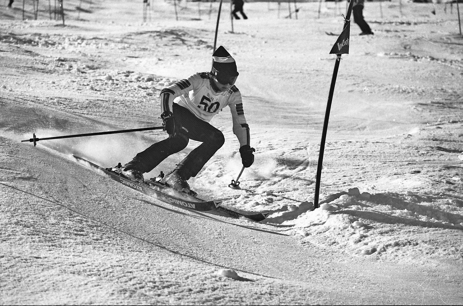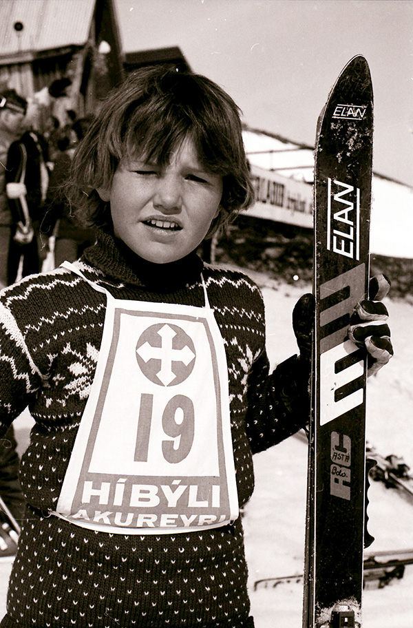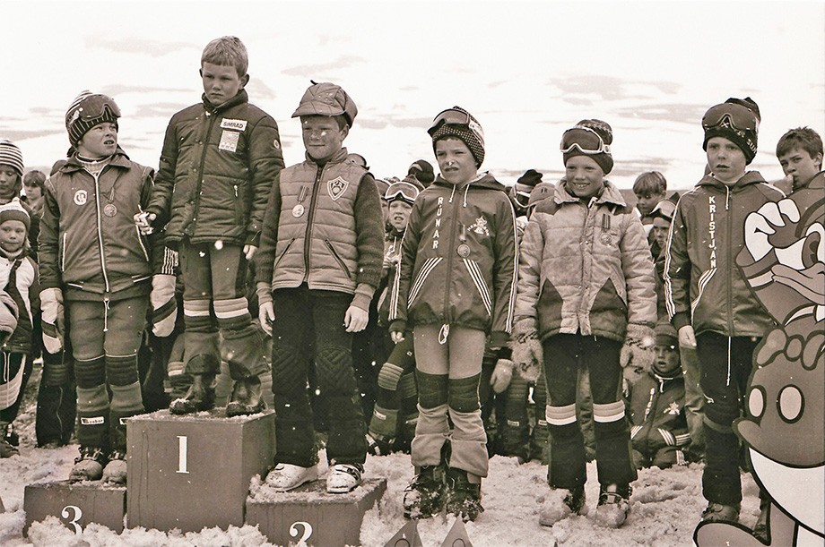 Átta ára meistari! Kristinn Björnsson frá Ólafsfirði vann bæði svig og stórsvig. Myndin er tekin þegar verðlaun voru veitt fyrir stórsvigið – til hægri er Akureyringurinn Magnús Karlsson sem varð annar og til vinstri Arnar Bragason frá Húsavík sem lenti í þriðja sæti. 16 árum eftir að þessi mynd var tekin náði Kristinn þeim stórkostlega árangri að verða í 2. sæti á heimsbikarmóti í Park City í Bandaríkjunum, aðeins einum hundraðasta á eftir sigurvegaranum, Thomas Stangassinger frá Austurríki. Kristinn var þremur hundruðustu úr sekúndu á undan Norðmanninum Finn Christian Jagge sem lenti í þriðja sæti. Kristinn varð vitaskuld margfaldur Íslandsmeistari og keppti á fernum Ólympíuleikum; í Albertville 1992, Lillehammer 1994, Nagano 1998 og Salt Lake City 2002.