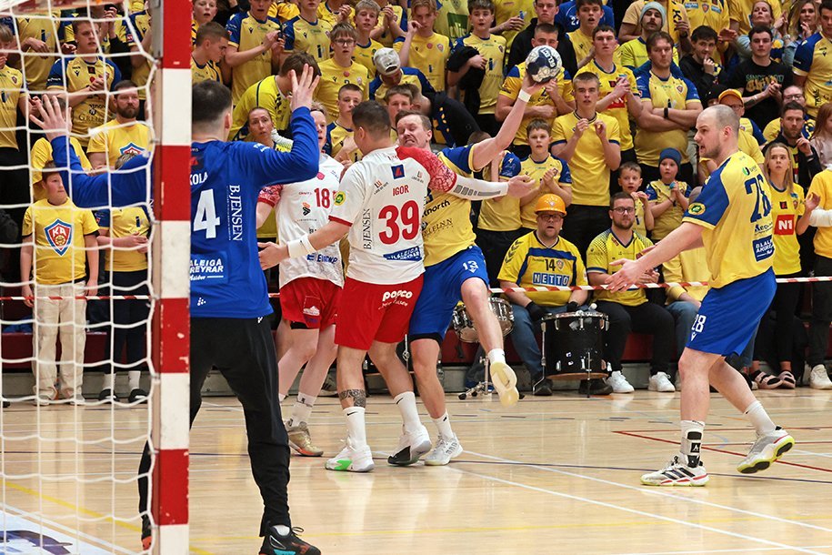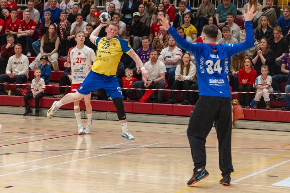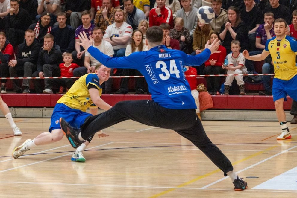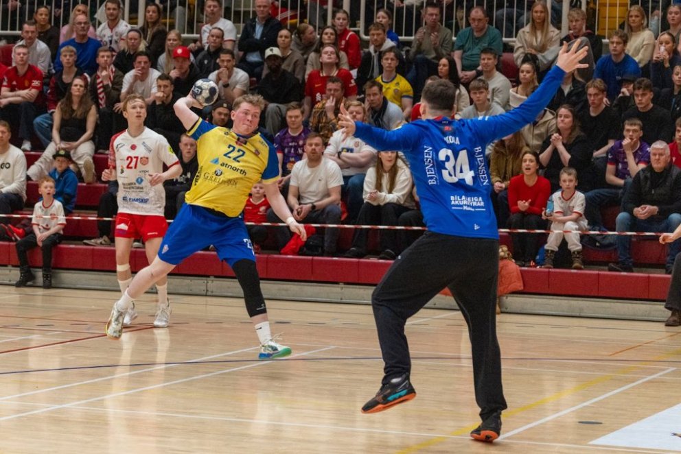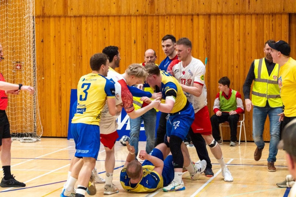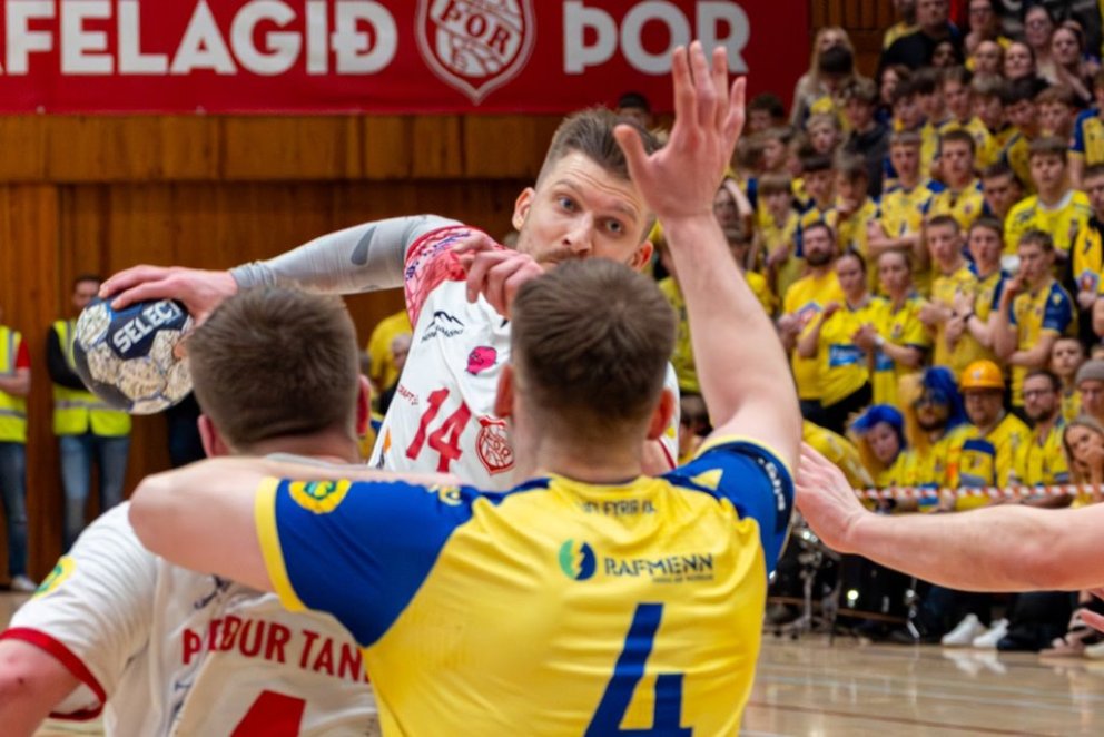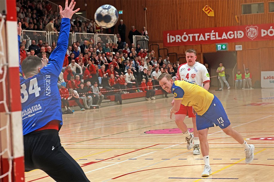 12. mars 2025 – Mikið gekk á í Íþróttahöllinni á Akureyri þegar Þór og KA mættust í lokaumferð efstu deildar karla í handknattleik. Leikurinn var mikilvægur fyrir bæði lið og hafði upp á allt að bjóða sem prýðir alvöru grannaslag – stappfullt hús háværra áhorfenda, markvörslur á báða bóga, mistök af öllu tagi, hörkubaráttu, pústra, rautt spjald... og háspennu allan tímann. Svo fór að lokum að leikurinn endaði með jafntefli, 31:31, sem gagnaðist hvorugu liðinu í baráttunni um betri stað í stöðutöflunni. Myndir: Ármann Hinrik og Skapti Hallgrímsson