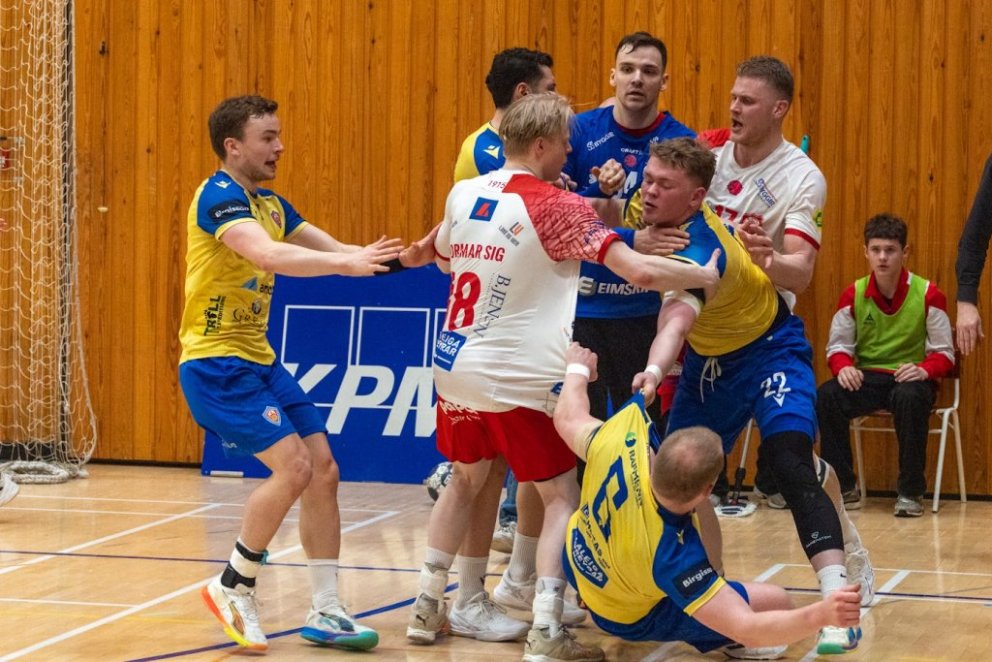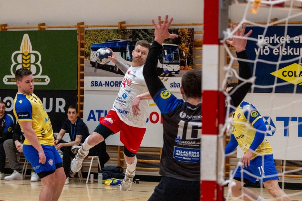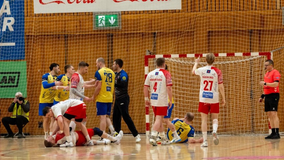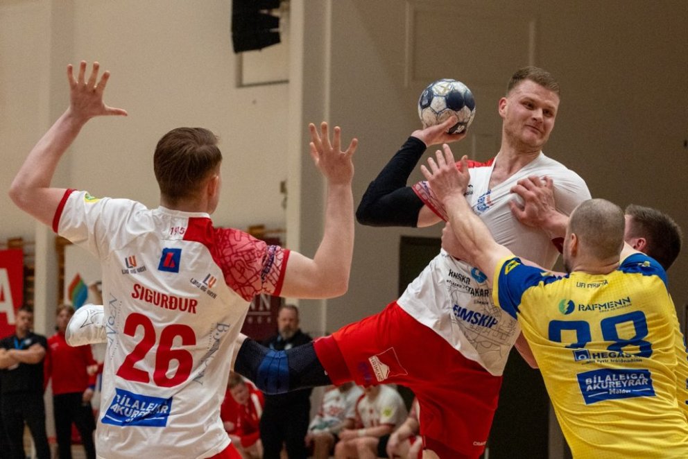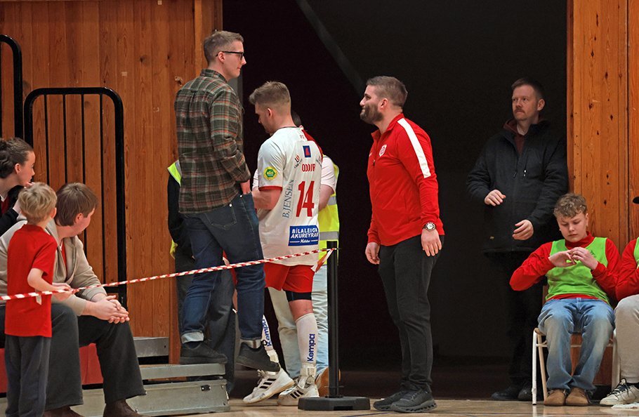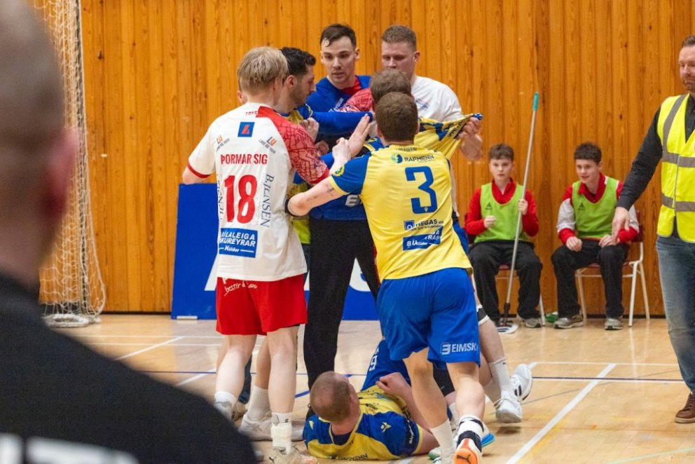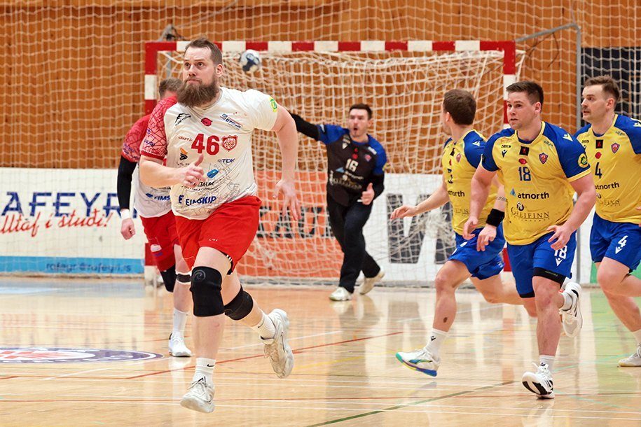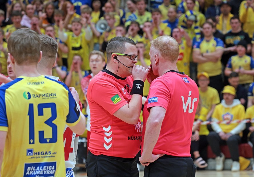 12. mars 2025 – Mikið gekk á í Íþróttahöllinni á Akureyri þegar Þór og KA mættust í lokaumferð efstu deildar karla í handknattleik. Leikurinn var mikilvægur fyrir bæði lið og hafði upp á allt að bjóða sem prýðir alvöru grannaslag – stappfullt hús háværra áhorfenda, markvörslur á báða bóga, mistök af öllu tagi, hörkubaráttu, pústra, rautt spjald... og háspennu allan tímann. Svo fór að lokum að leikurinn endaði með jafntefli, 31:31, sem gagnaðist hvorugu liðinu í baráttunni um betri stað í stöðutöflunni. Myndir: Ármann Hinrik og Skapti Hallgrímsson