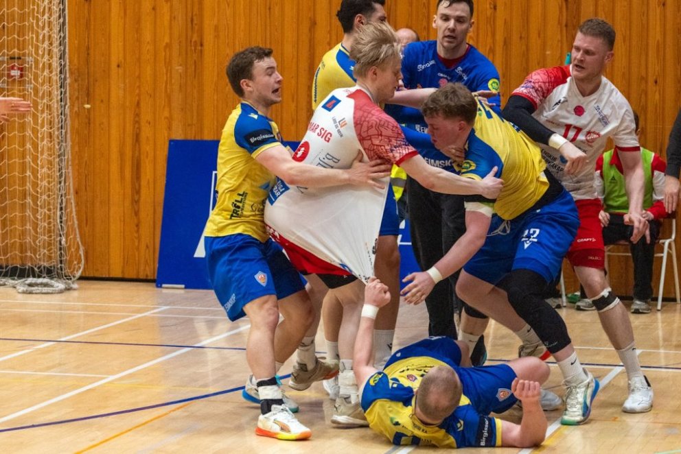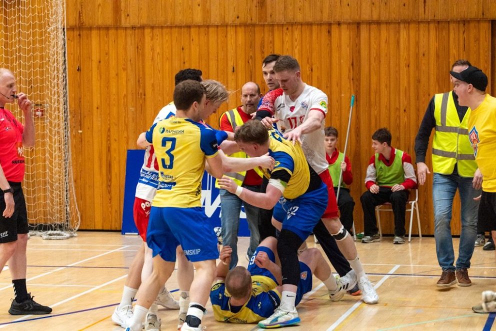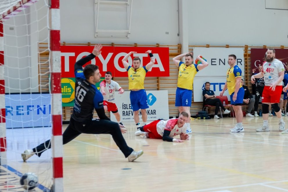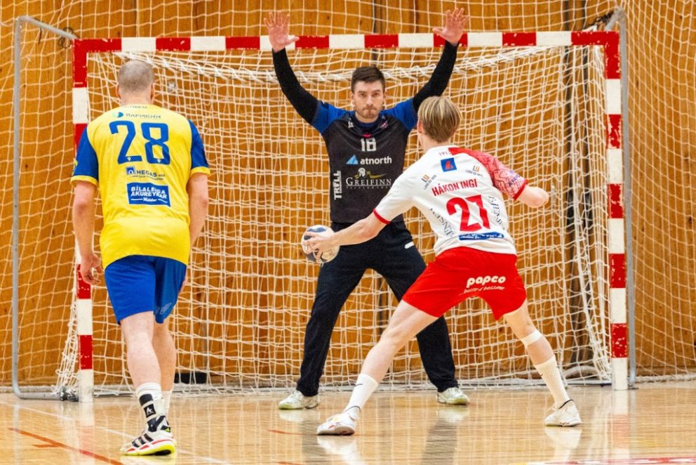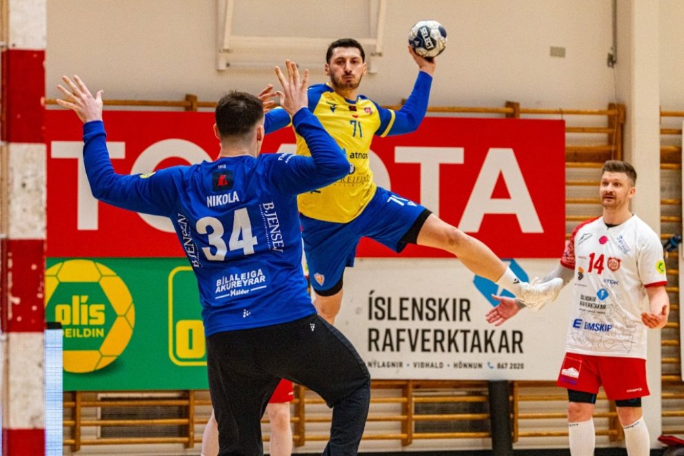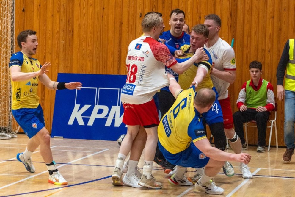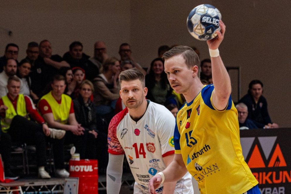 12. mars 2025 – Mikið gekk á í Íþróttahöllinni á Akureyri þegar Þór og KA mættust í lokaumferð efstu deildar karla í handknattleik. Leikurinn var mikilvægur fyrir bæði lið og hafði upp á allt að bjóða sem prýðir alvöru grannaslag – stappfullt hús háværra áhorfenda, markvörslur á báða bóga, mistök af öllu tagi, hörkubaráttu, pústra, rautt spjald... og háspennu allan tímann. Svo fór að lokum að leikurinn endaði með jafntefli, 31:31, sem gagnaðist hvorugu liðinu í baráttunni um betri stað í stöðutöflunni. Myndir: Ármann Hinrik og Skapti Hallgrímsson