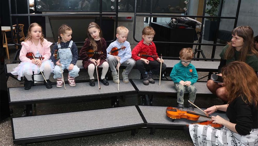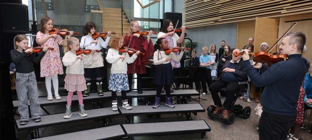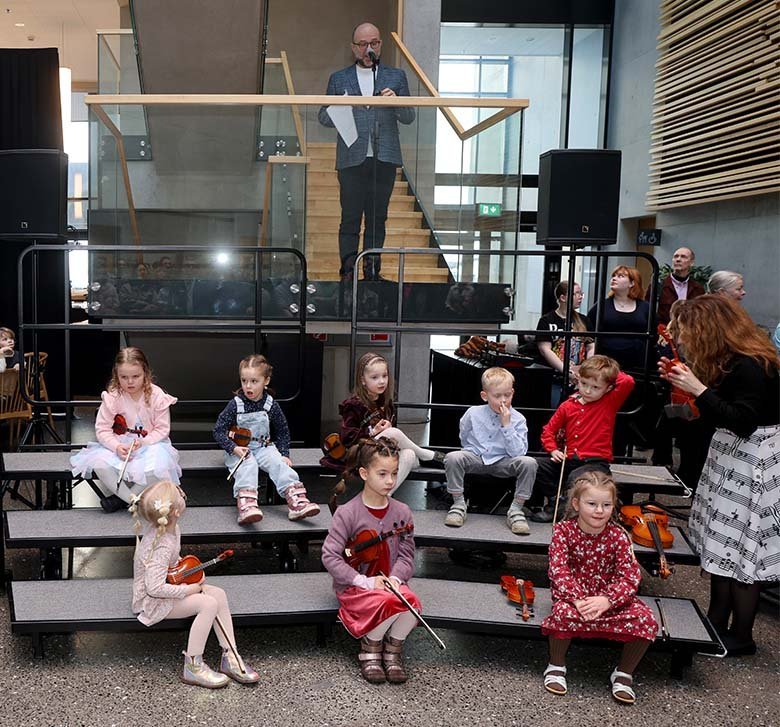 7. febrúar 2026 – Tónlistarskólinn á Akureyri fagnar 80 ára afmæli í ár. Fyrsti hluti afmælisfagnaðar ársins var laugardaginn 7. febrúar þegar boðið var til hátíðar í Menningarhúsinu Hofi þar sem skólinn er til húsa. Nemendur fluttu tónlist og smiðjur, þar sem gestir fengu að taka virkan, voru hér og þar um húsið. Þorgeir Baldursson mætti á staðinn með myndavélina.