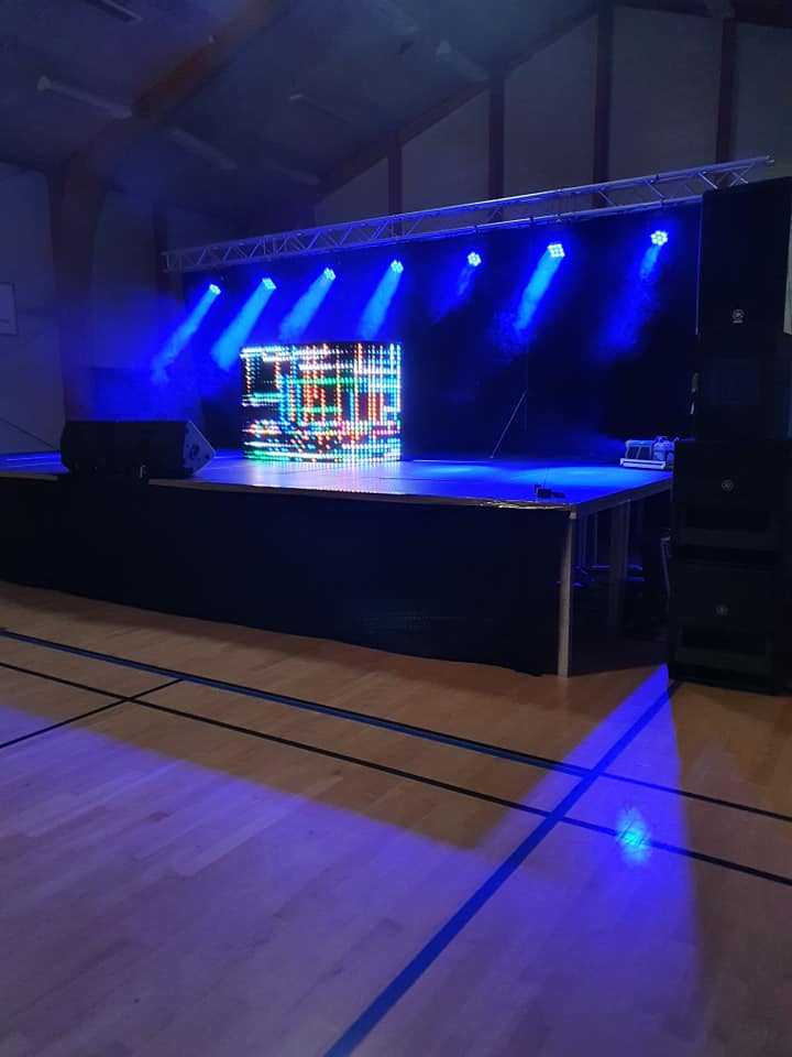 Það er að ýmsu að huga þegar kemur að því að skipuleggja viðburð. Rétt lýsing getur t.d. gjörbreytt stemmingunni í hvaða íþróttahúsi sem er og fært rýmið í sparibúning. Þessi mynd er frá árshátíð Mosfellsbæjar.