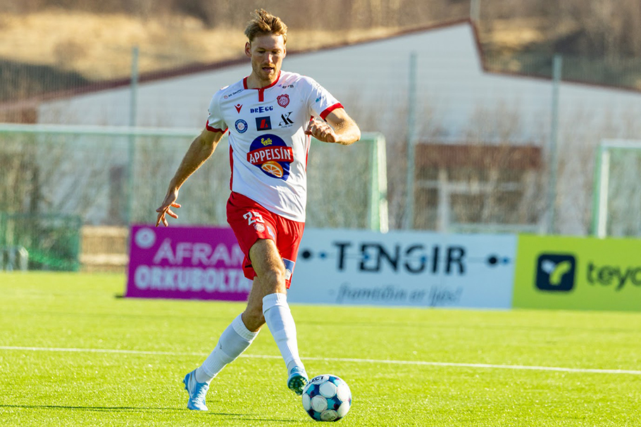 Fimm mín. síðar fékk Þór aftur dauðafæri, raunar mun betra en Ágúst Eðvald fékk í blábyrjun leiksins. Það kom eftir glæsilega skyndisókn; Aron Ingi gat út á vinstri kant á Atanga, hann lék inn á teig og sendi á „Greko“ Jakobsen sem stakk sér inn á teig á hárréttum tíma en skaut framhjá opnu markinu. Ótrúlegt að sjá hjá þessum öfluga, reynda leikmanni.