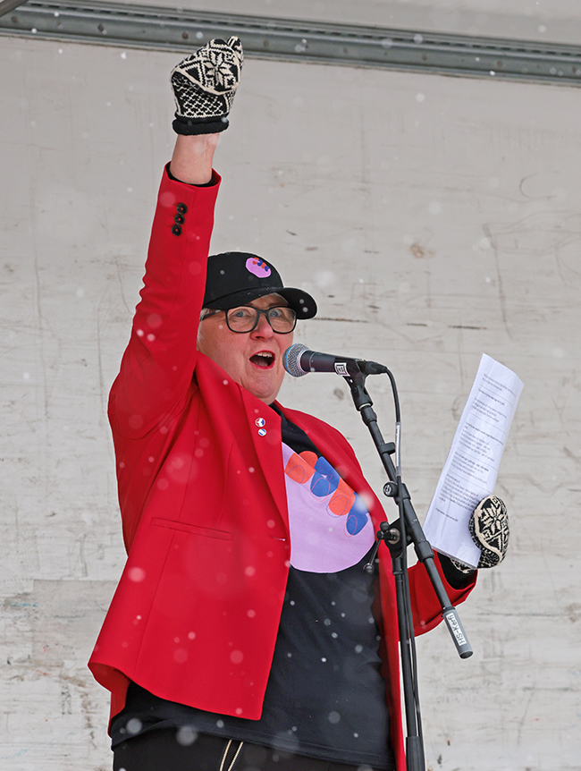 Arna Jakobína Björnsdóttir, formaður Kjalar stéttarfélags, á Ráðhústorgi í morgun.