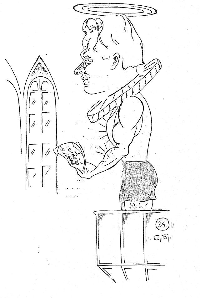Teikning af Braga í Carmínu, árbókinni góðu þar sem dregnar eru upp kómískar myndir af útskriftarnemendum.