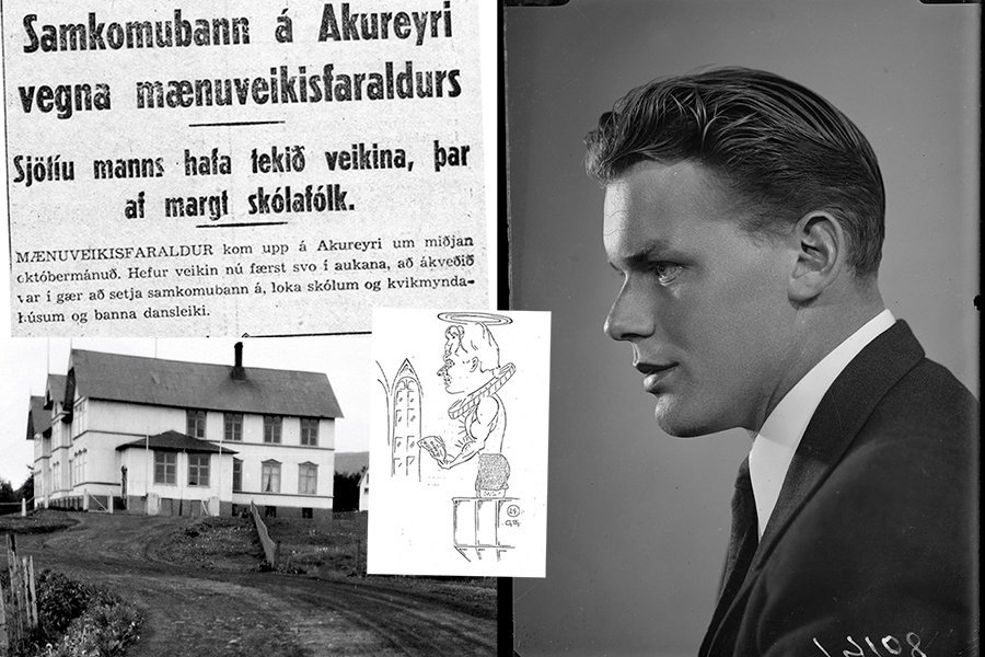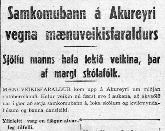 Frétt í Morgunblaðinu um Akureyrarveikina. Bragi veiktist alvarlega af henni og hét Guði á sjúkrabeði sínum að helga líf sitt honum ef hann fengi að lifa.