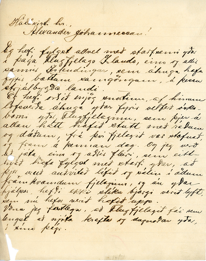 Hér er bréf Árna til Alexanders, fimm handskrifaðar síður