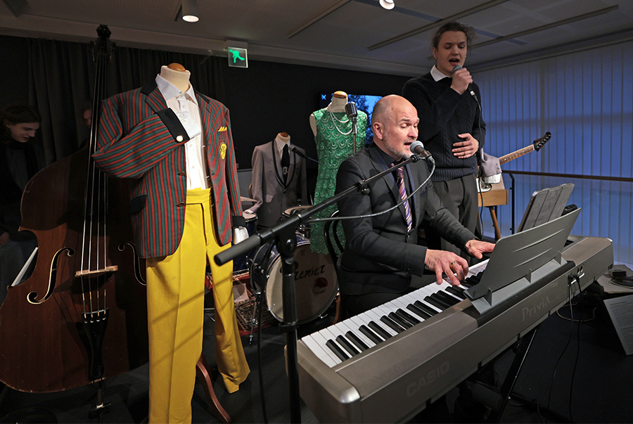 Ívar Helgason lék á hljómborð og þeir Aron Freyr Ívarsson sungu með börnunum og jólagestunum úr Dimmuborgum.