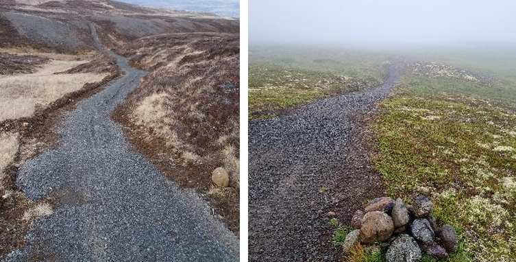 - Dýpt og aðferð, önnur aðferð við stígagerðina notuð en fram kemur í leyfinu. Allur stígurinn er unninn með aðferð sem í stórum dráttum felst í að ýta/moka jarðvegi þar sem land er hærra og nýta til uppfyllingar þar sem land liggur lægra (cut and fill), í stað svokallaðrar skúffuaðferðar sem vísað er til í bréfinu. Allur gróður sem tekinn er upp er notaður í undirlag, en ekki tekinn neinn gróður til hliðar til að loka rofarásum.