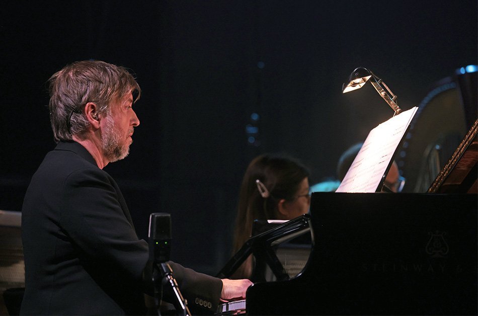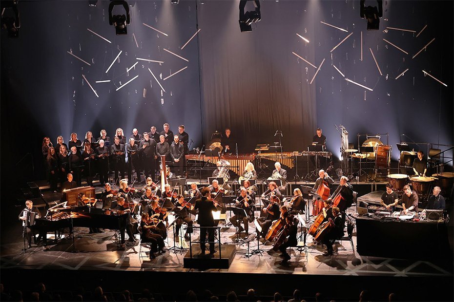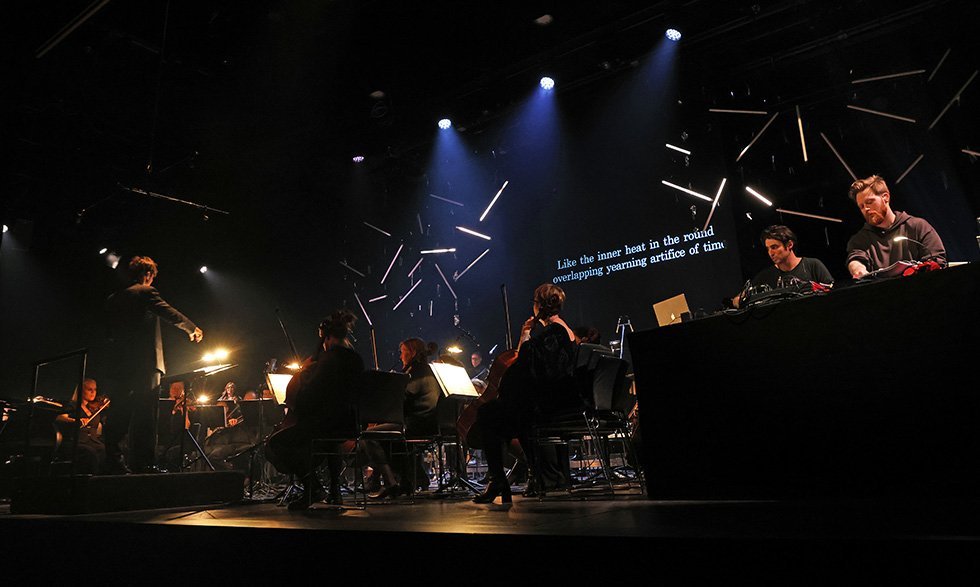 Tónskáldið Atli Örvarsson fyllti Hamraborgarsal menningarhússins Hofs ljósi og myrkri í gær, skírdag, þegar verk hans voru flutt af hljóðfæraleikurum úr Sinfóníuhljómveit Norðurlands, raftríóinu Tjöru, Sönghópi Sinfonia Nord, söngkonunni Þórhildi Örvarsdóttur, systur tónskáldsins og Atla sjálfum, sem var á sviðinu fyrri hluta tónleikanna og lék bæði á flygil og harmoniku.