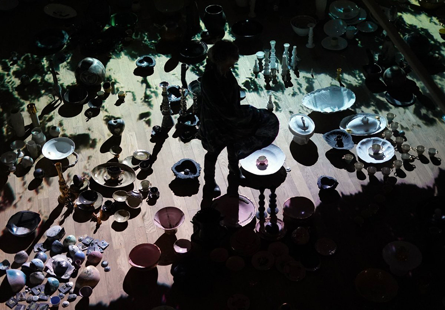 Margrét Jónsdóttir leirlistakona opnaði sýningu á Listasafninu í tilefni 40 ára starfsafmælis.