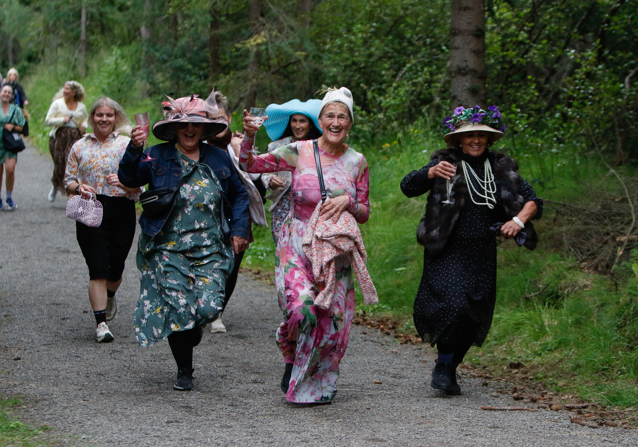 Sumarkjóla- og freyðivínshlaupið var mikil veisla, en það var haldið í aðdraganda hátíðarinnar Einnar með öllu um verslunarmannahelgina. Þessar prúðbúnu dömur voru hressar! Hér má sjá fleiri myndir frá hlaupinu.