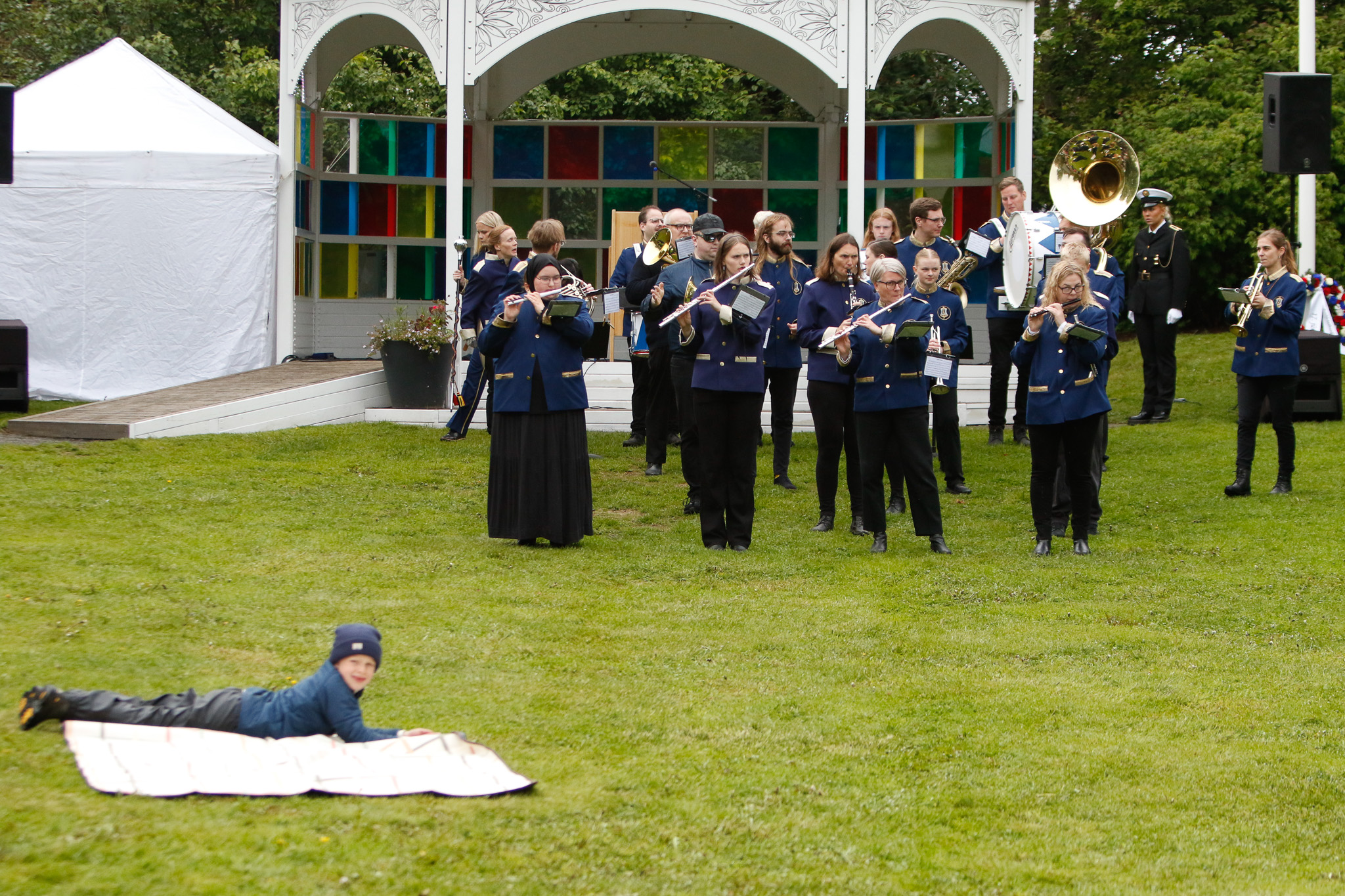 Þessi lét fara vel um sig á „fremsta bekk“ á meðan Lúðrasveit Akureyrar lék í Lystigarðinum 17. júní!