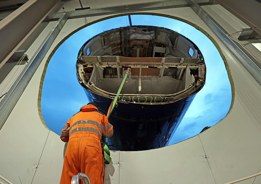 Merkileg „viðbygging“ við Flugsafn Íslands á Akureyrarflugvelli varð að veruleika 1. október. Um er að ræða fremsta hluta Boeing 757-223 þotunnar Eldfells, sem Icelandair afhenti safninu að gjöf fyrir nokkrum misserum, og skagar nú út úr norðurgaflinum. Innangengt verður í þotuna úr safninu. Hér má sjá myndasyrpu af því hvernig verkið gekk fyrir sig: