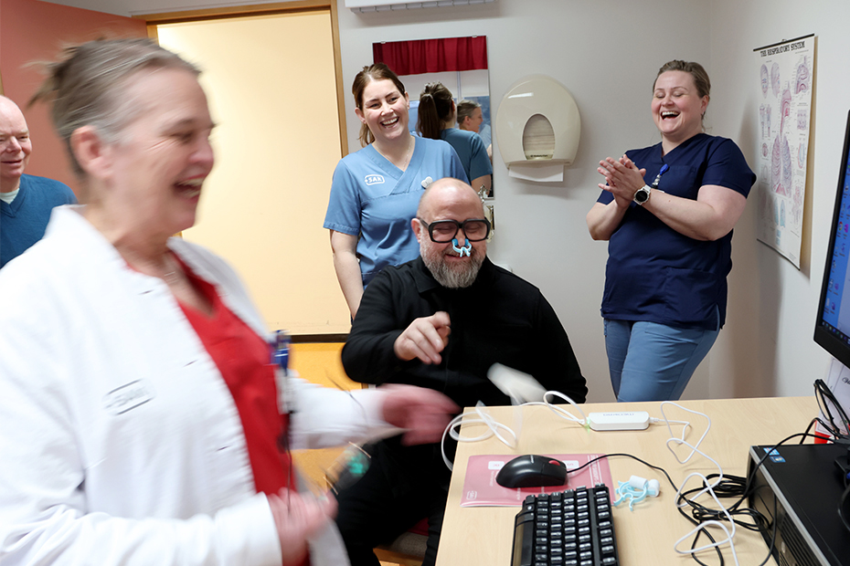 Fyrirtækið Rafeyri á Akureyri gaf endurhæfingar- og öldrunarlækningaþjónustu Sjúkrahússins á Akureyri (SAk) forláta lungnamæli; glænýjan í stað þess gamla sem hætt var að nota þar sem ekki fengust lengur í hann varahlutir. Davíð Hafsteinsson, formaður stjórnar Rafeyrar, og Kristinn Hreinsson framkvæmdastjóri fyrirtækisins, þágu boð um að prófa tækið í Kristnesi. Í ljós kom að mælirinn sá arna virkaði ljómandi vel og stemningin var eins og á góðu uppistandi!