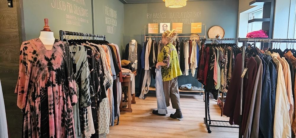 Verslunin á Akureyri hefur fengið nafnið Hygge og hýjalín og þar verður að finna fatnað, skó og töskur frá dönskum hönnuðum/fyrirtækjum á Jótlandi sem leggja áherslu á hæglætistísku (slow fashion). Þar má nefna flíkur frá Cofur úr endurunnum silkisaríum frá Indlandi, merinó- og hörfatnað frá By Basics, sem framleiðir sínar vörur eingöngu eftir pöntunum verslana og situr því aldrei uppi með lager. Þá er verslunin með þægilega skó frá Tim og Simonsen sem hægt er að dansa í alla nóttina, eins og Lára orðar það. Auk þess verður fyrir jólin boðið upp á sérvalda danska og sænska gjafavöru sem Hús handanna flytur inn.
