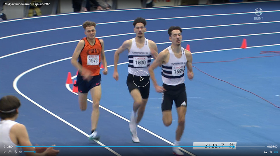 Baldvin Þór Magnússon úr Ungmennafélagi Akureyrar var aðeins hársbreidd frá því að bæta eigið Íslandsmet í 1500 metra hlaupi innanhúss, á Reykjavíkurleikunum í Laugardalshöllinni í gær. Ekki eru nema tvær vikur síðan hann stórbætti eigið Íslandsmet í 10 km götuhlaupi, um tæp mínútu – sjá hér – og því töluvert afrek að ná jafn góðum tíma í 1500 m í gær, svo ólíkar eru greinarnar.