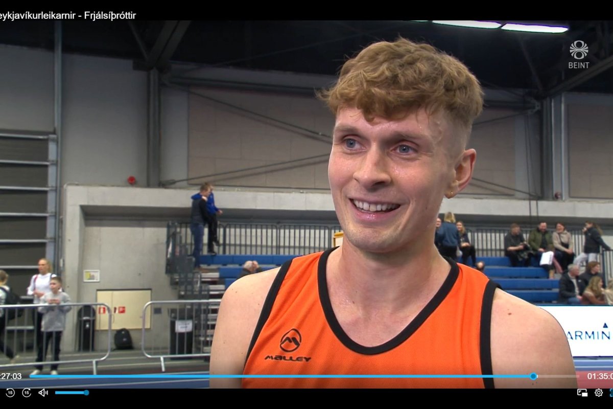 Baldvin Þór Magnússon í viðtali á RÚV strax eftir 1500 m hlaupið í gær. Skjáskot af RÚV.